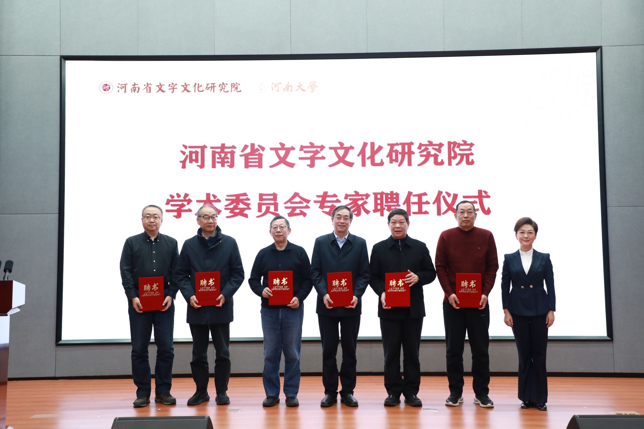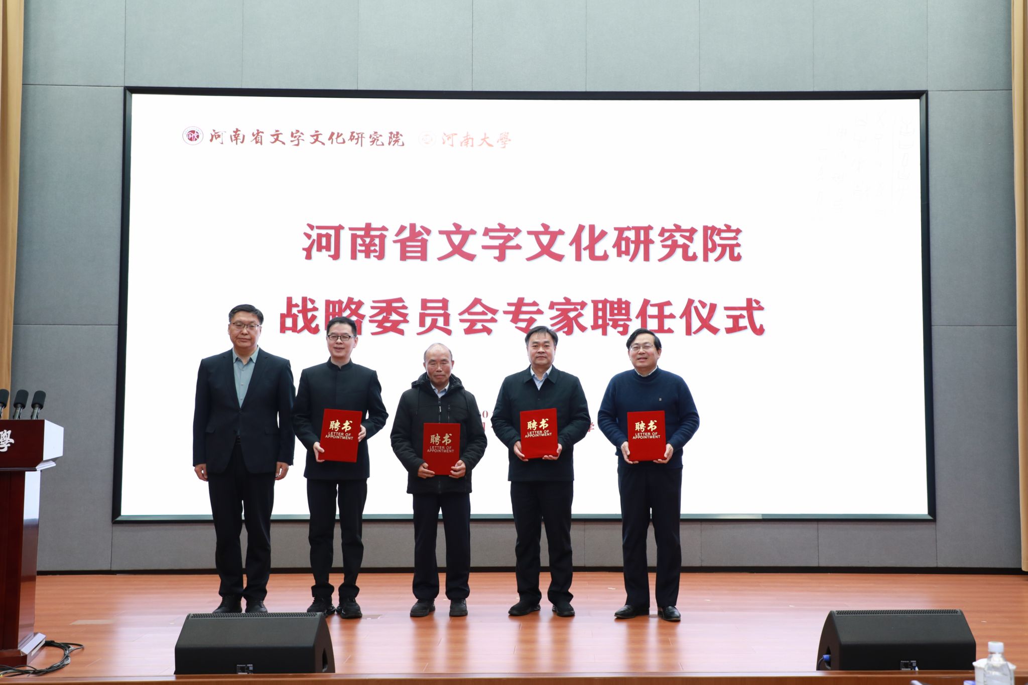 杨萌芽、海霞为受聘专家代表颁发了聘书。中国古文字研究会会长、吉林大学吴振武教授代表受聘专家发言,表达了对研究院的期望与祝福。河南大学资深教授、著名文史学者王立群老师,中国社会科学院新闻与传播研究所所长胡正荣教授通过视频向论坛的举办表示祝贺。