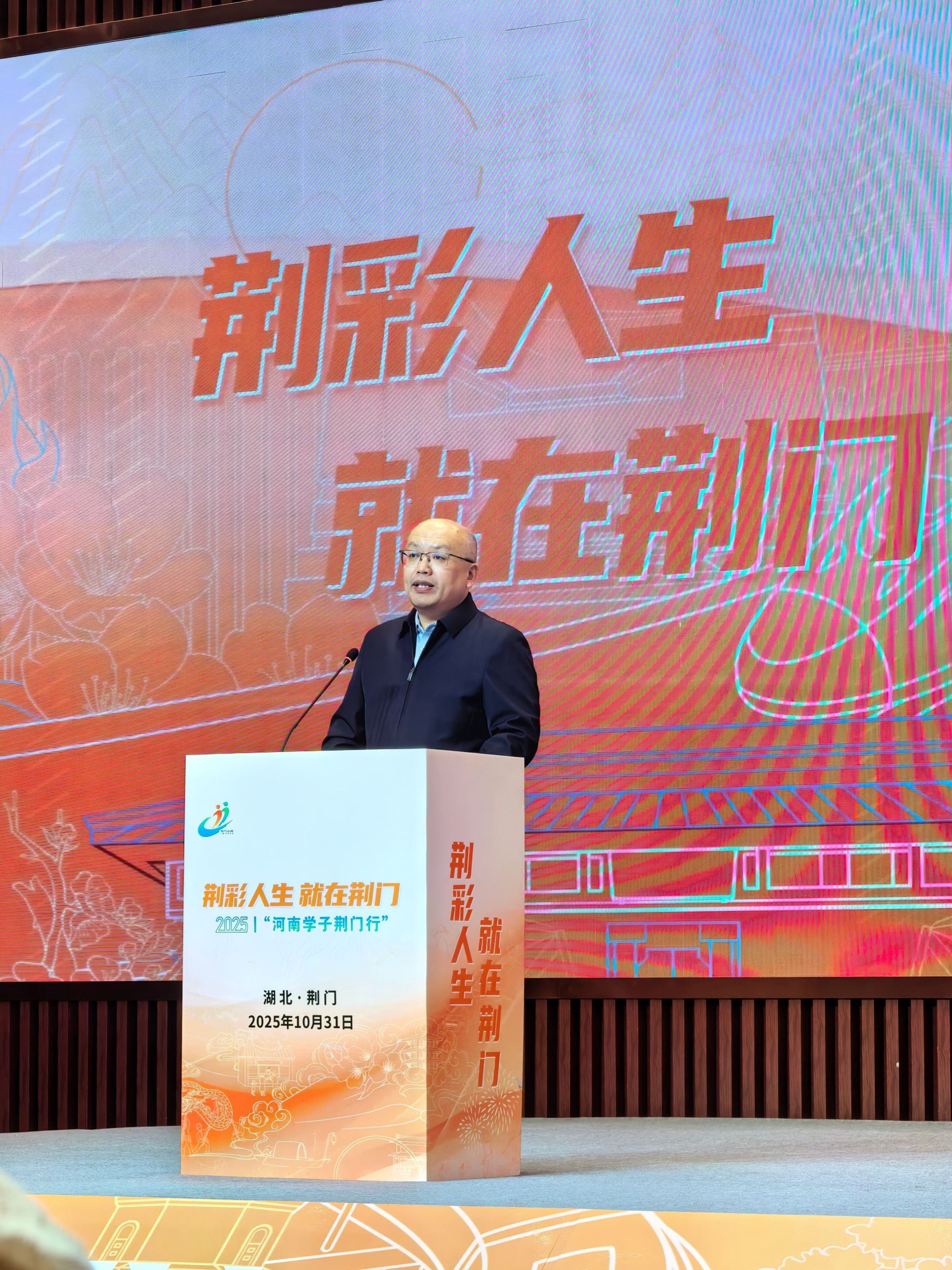 薛波在2025“河南学子荆门行”启动仪式上致辞