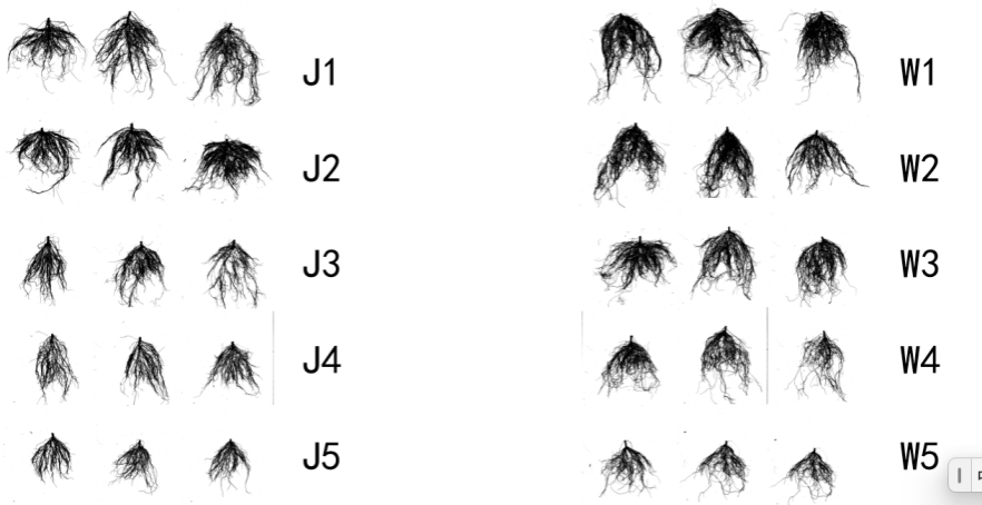 图5B 不同处理条件下菊花根部生长状况