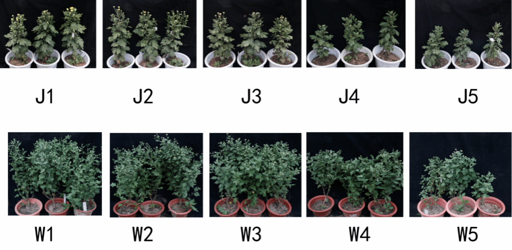 图5C 不同处理条件下菊花生长和开花状况